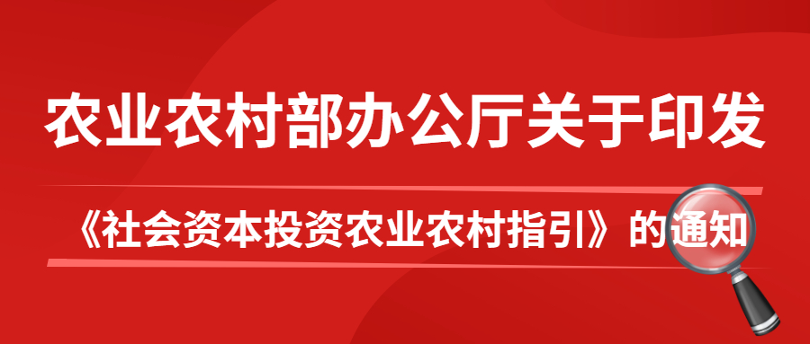 农业农村部办公厅关于印发《社会资本投资农业农村指引》的通知